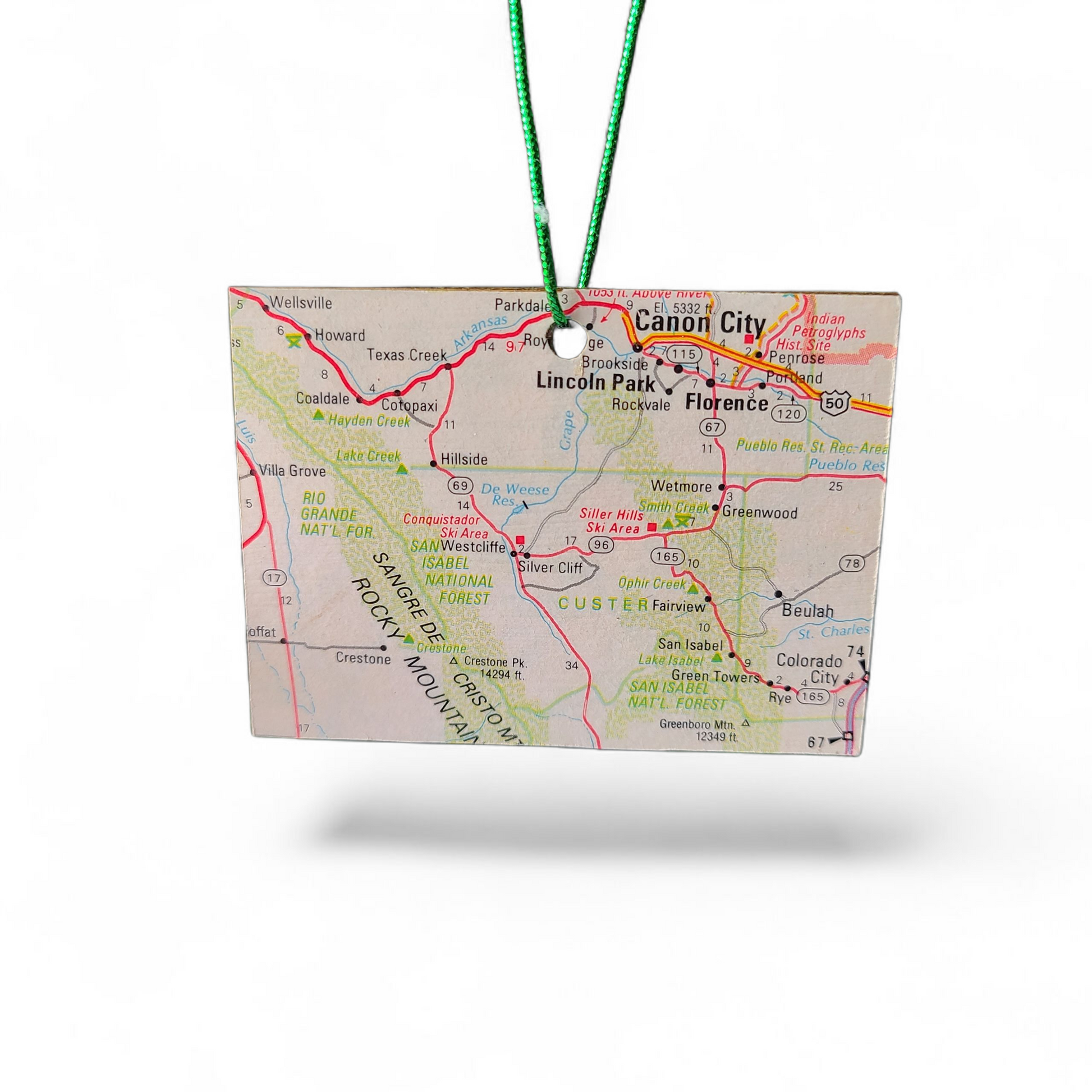 - Map overlaid on 3mm basswood cut out in the shape of Colorado.