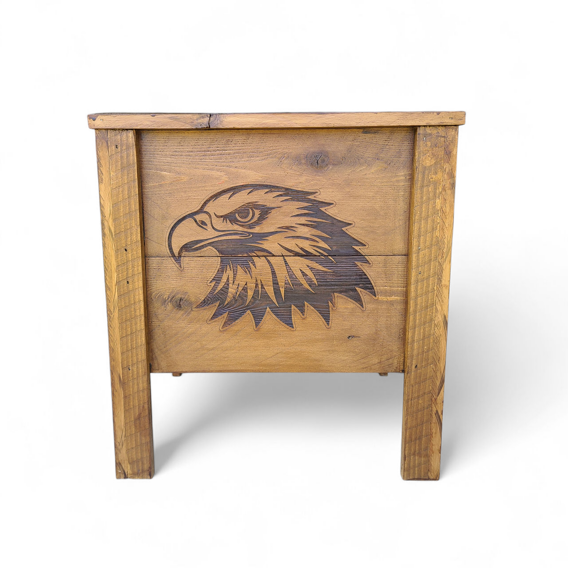 - Handmade Cedar planter box with eagle head engraved on one side.